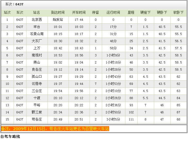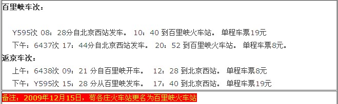 火車乘車路線,野三坡百里峽列車時刻表