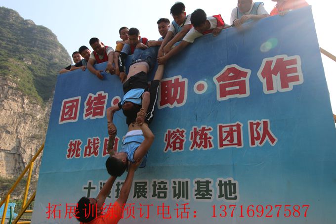 拓展訓練項目畢業墻也叫海難逃生,因為常常將它安排在最后一個項目,所以也叫逃生墻或者勝利墻,國外通常稱14英尺墻。這個項目讓學員懂得個人目標與團隊目標的關系,只有團隊獲得勝利才有真正的勝利。全隊所有成員在規定的時間內翻越一面高4.2米的光滑墻面,在此過程中,大家不能借助任何外界的工具,包括:衣服、皮帶、繩子等。所能用的資源只有每個人的身體。